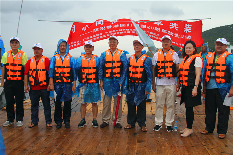 在举国上下庆祝香港回归祖国20周年的热烈氛围中,广东放生协会联合中国水产科学研究院南海水产研究所于2017年7月8日上午在深圳市大鹏湾中国水产科学研究院南海水产研究所深圳试验基地举办了主题为“同心同梦 共享共荣”的庆祝香港回归祖国20周年放生活动。